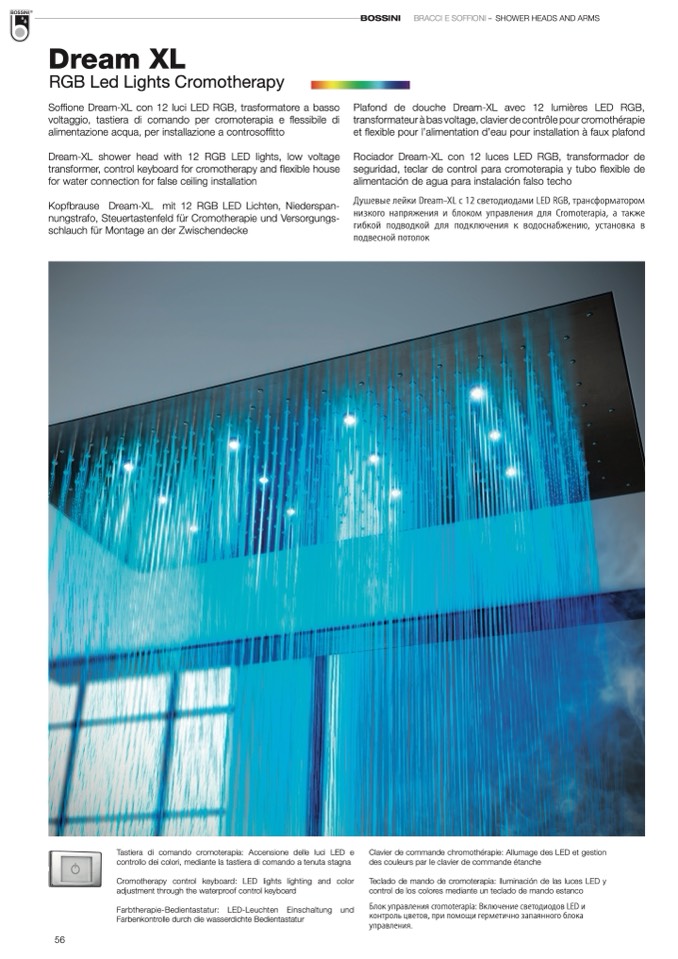 Dream-XL shower head with 12 RGB LED lights, low voltage