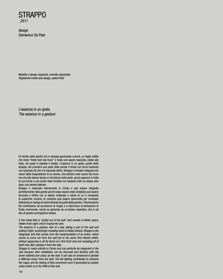con sorpresa ciò che vi è nascosto dietro. Strappo è il lavabo integrato che