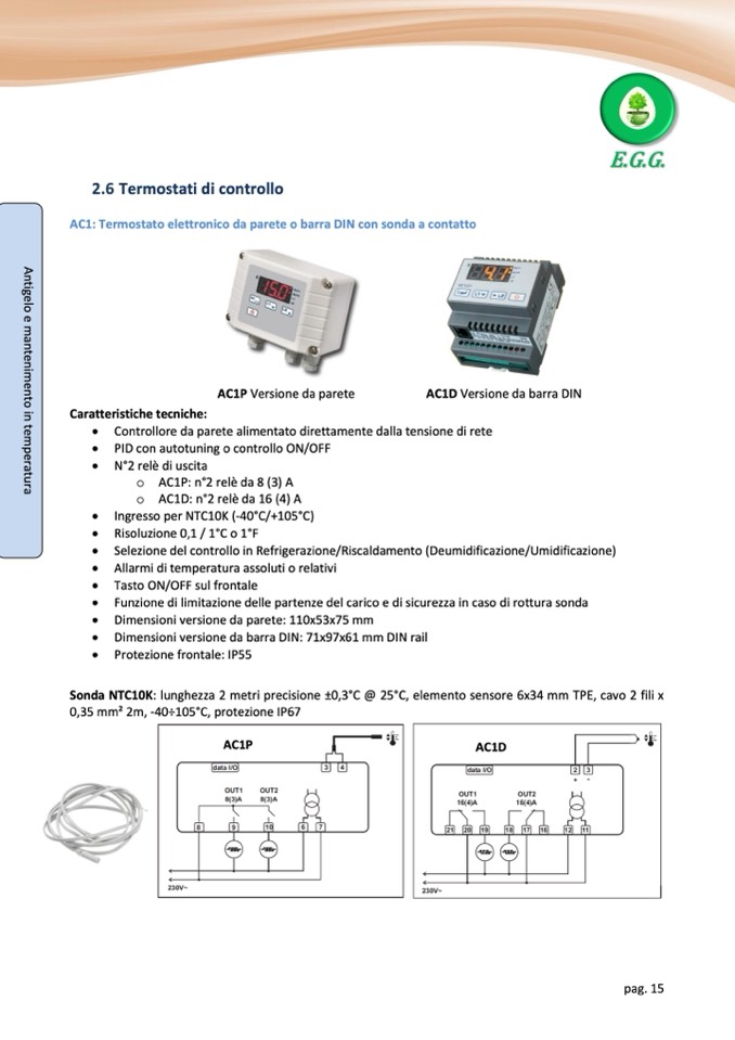 AC1: Termostato elettronico da parete o barra DIN con sonda a contatto