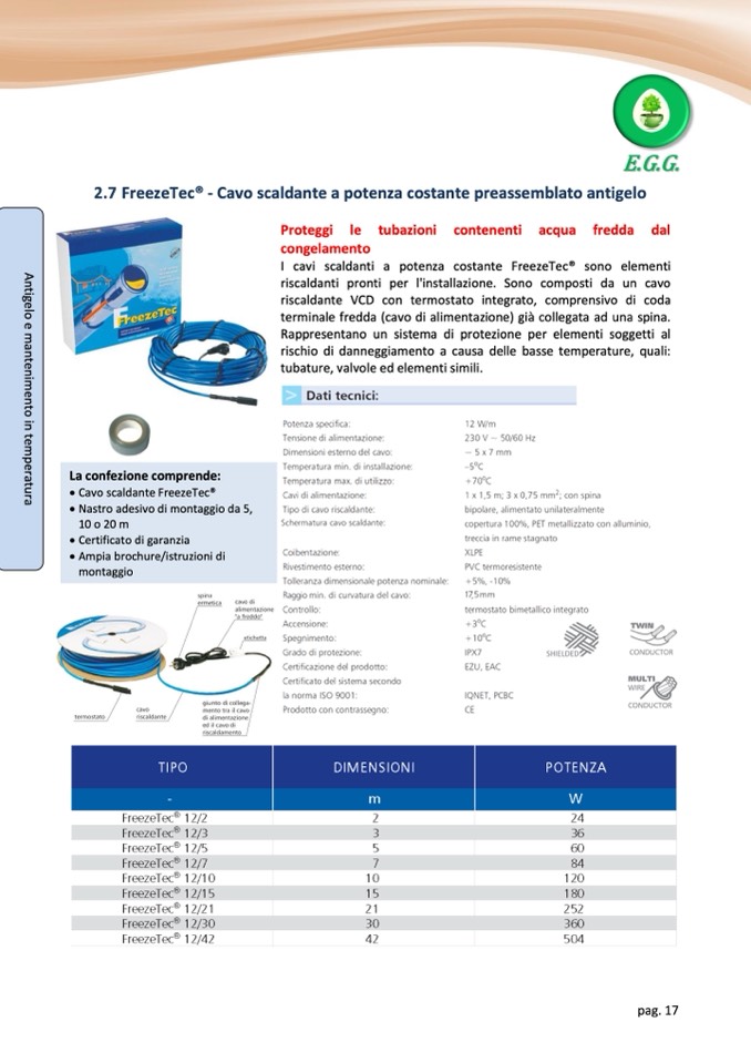 I cavi scaldanti a potenza costante FreezeTec® sono elementi