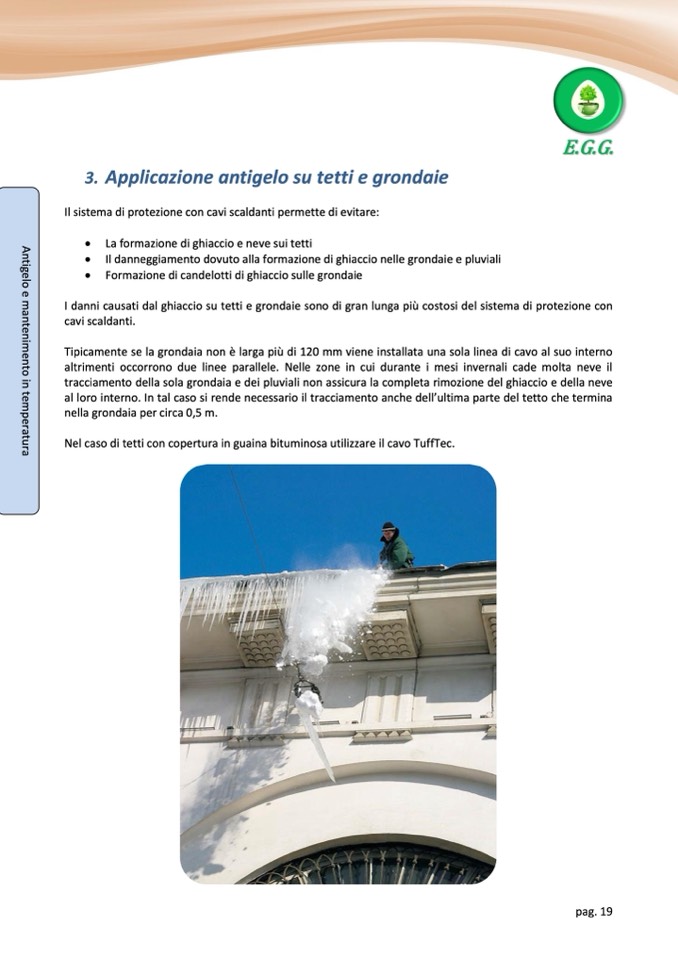 tracciamento della sola grondaia e dei pluviali non assicura la completa rimozione del ghiaccio e della neve