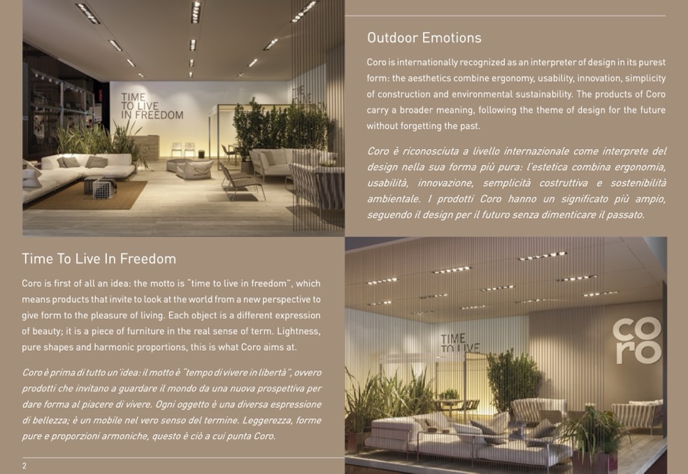 Coro is internationally recognized as an interpreter of design in its purest