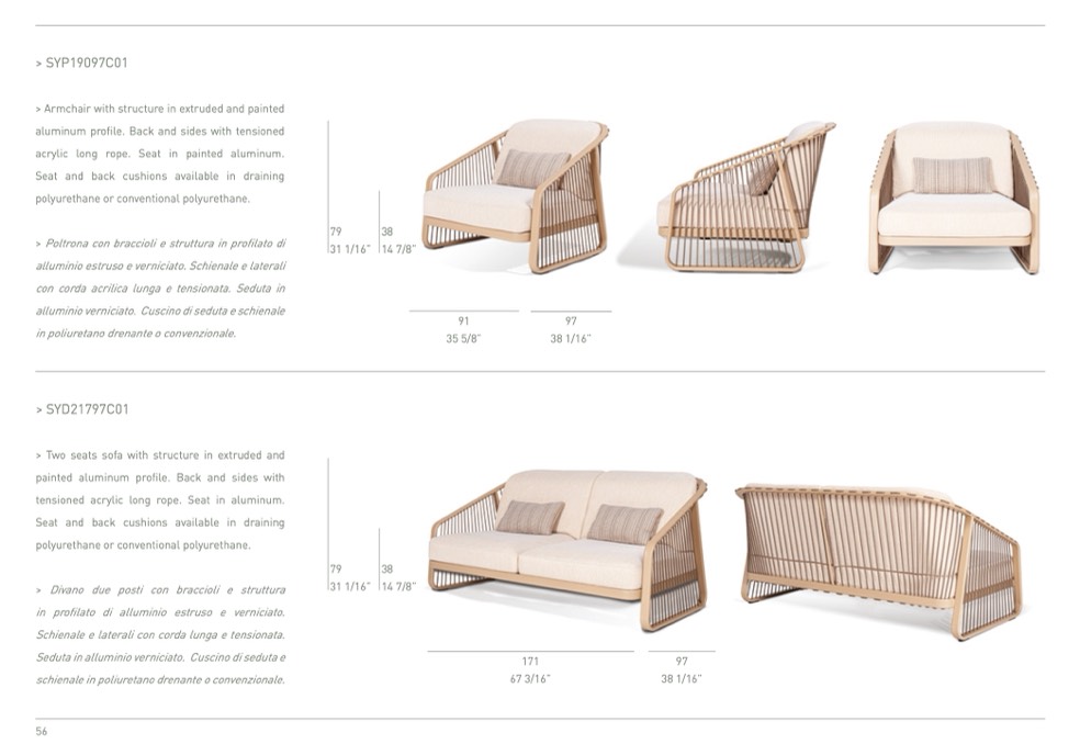 Seat and back cushions available in draining