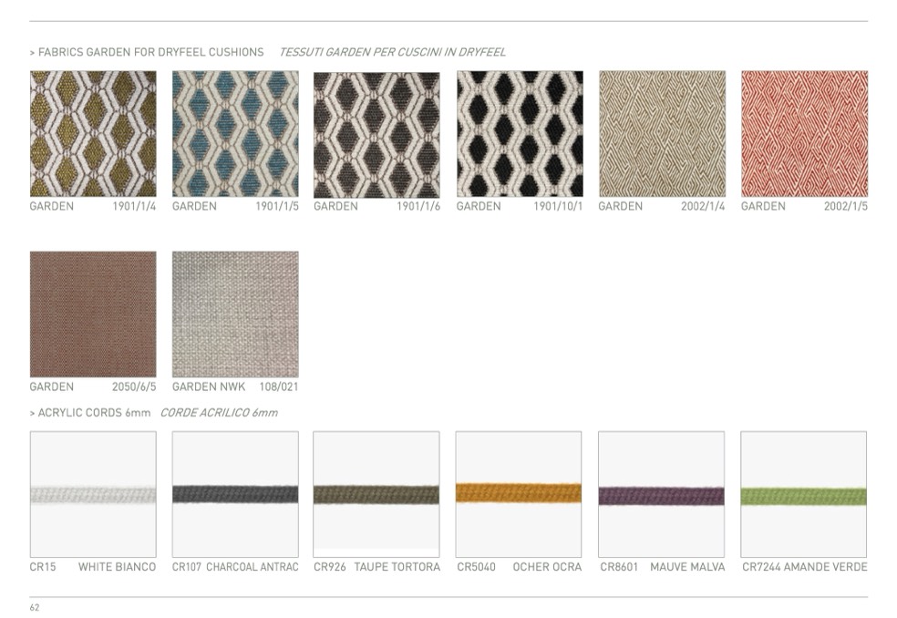 > FABRICS GARDEN FOR DRYFEEL CUSHIONS TESSUTI GARDEN PER CUSCINI IN DRYFEEL