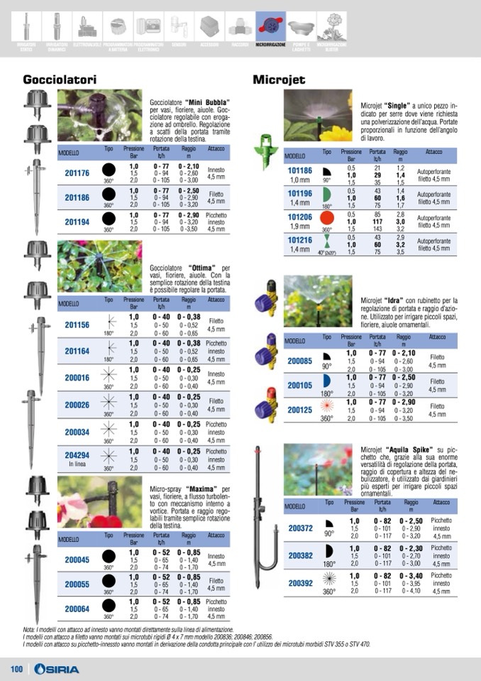 I modelli con attacco su picchetto-innessto vanno montati in derivazione della condotta principale con l’ utilizzo dei microtubi morbidi STV 355 o STV 470.