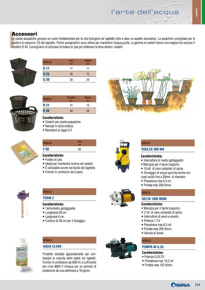 • Cestelli per piante acquatiche.