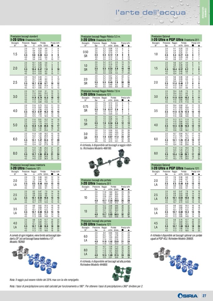Nota: I tassi di precipitazione sono stati calcolati per funzionamento a 180°. Per ottenere i tassi di precipitazione a 360° dividere per 2.