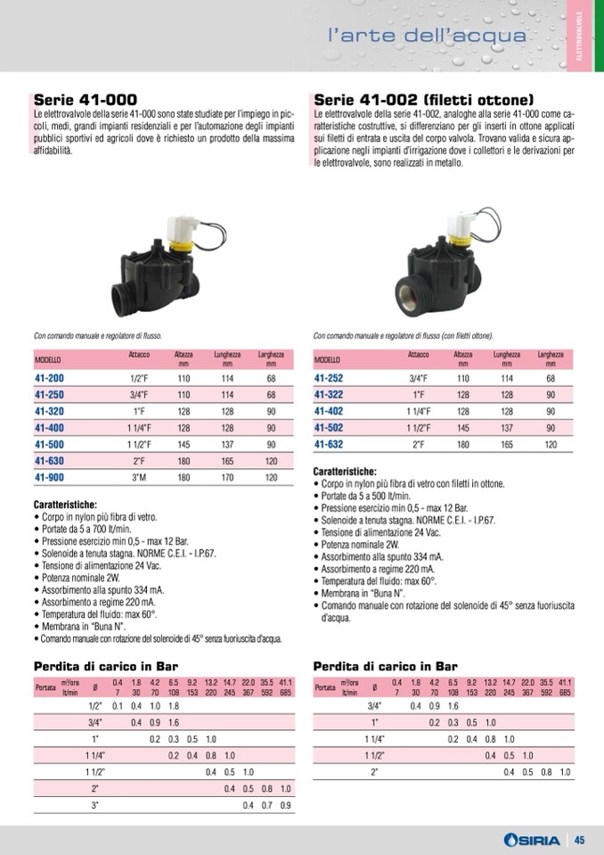 • Comando manuale con rotazione del solenoide di 45° senza fuoriuscita d’acqua.