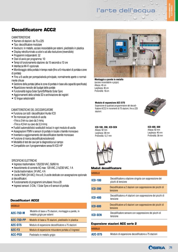 • Ingressi sensori: 3 Clik, 1 Solar Sync e 6 sensori di portata