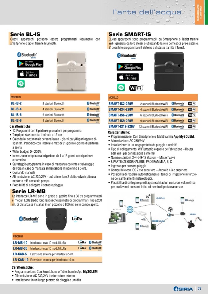 • Numero stazioni: 2-4-6-9-12 stazioni + Master Valve