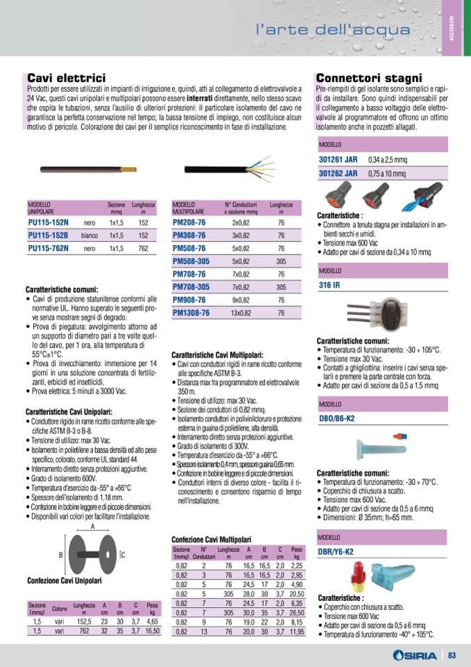 • Adatto per cavi di sezione da 0,5 a 6 mmq.