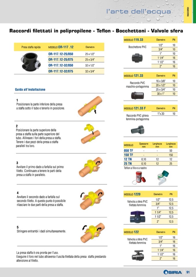 Raccordi filettati in polipropilene - Teflon - Bocchettoni - Valvole sfera
