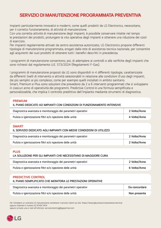 I programmi di manutenzione proposti da LG sono disponibili in 4 differenti tipologie, caratterizzate