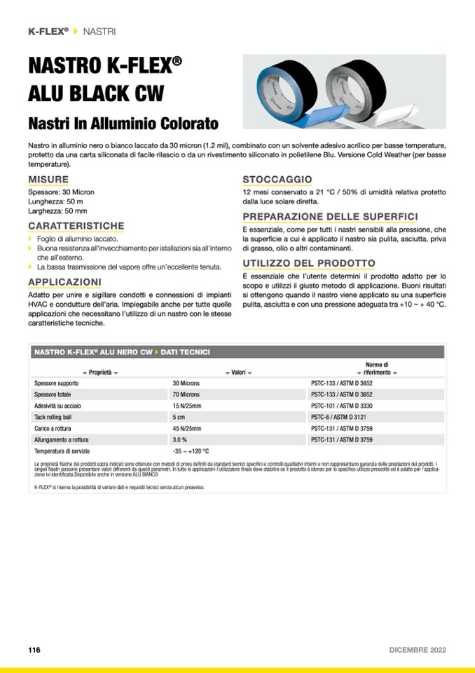 Nastro in alluminio nero o bianco laccato da 30 micron (1.2 mil), combinato con un solvente adesivo acrilico per basse temperature,