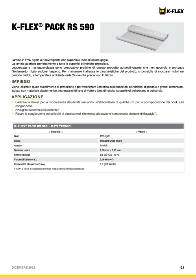 La lamina aderisce perfettamente a tutte le superfici cilindriche preisolate.