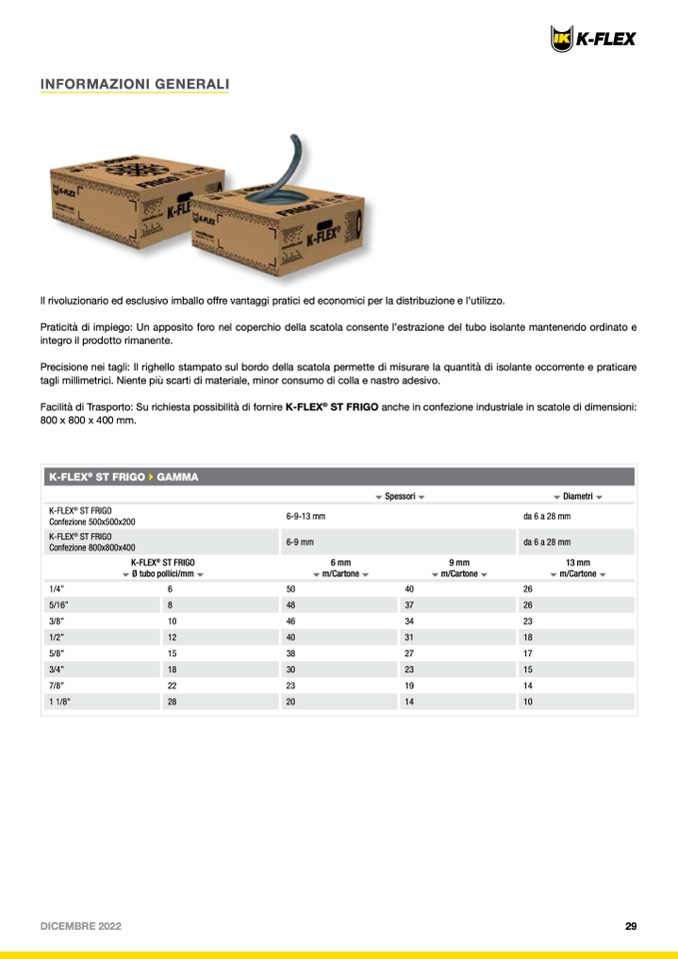 Facilità di Trasporto: Su richiesta possibilità di fornire K-FLEX