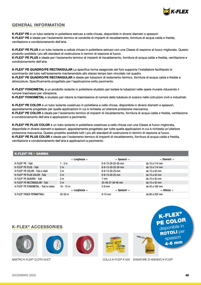 PE PLUS COLOR è un tubo isolante in polietilene coestruso a celle chiuse con una Classe al fuoco migliorata,