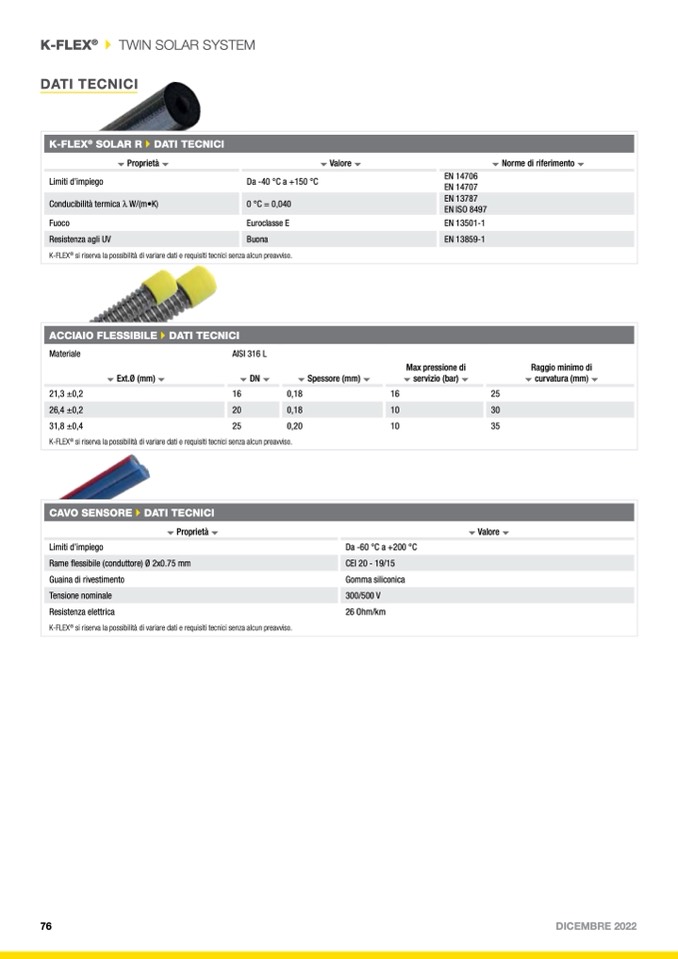 ACCIAIO FLESSIBILE`DATI TECNICI