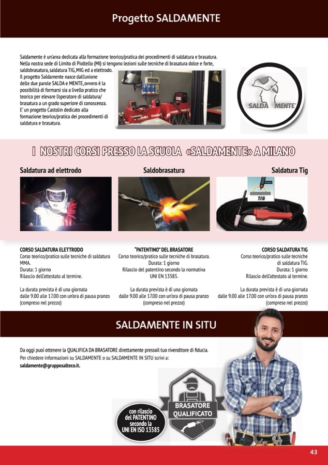 Saldamente è un’area dedicata alla formazione teorico/pratica dei procedimenti di saldatura e brasatura.