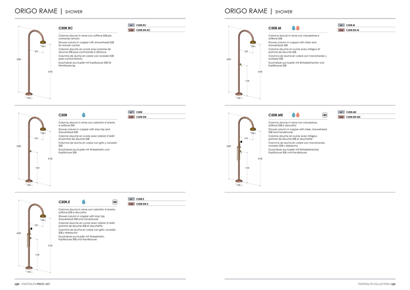 Duschsäule aus Kupfer mit Kopfbrause S08 für