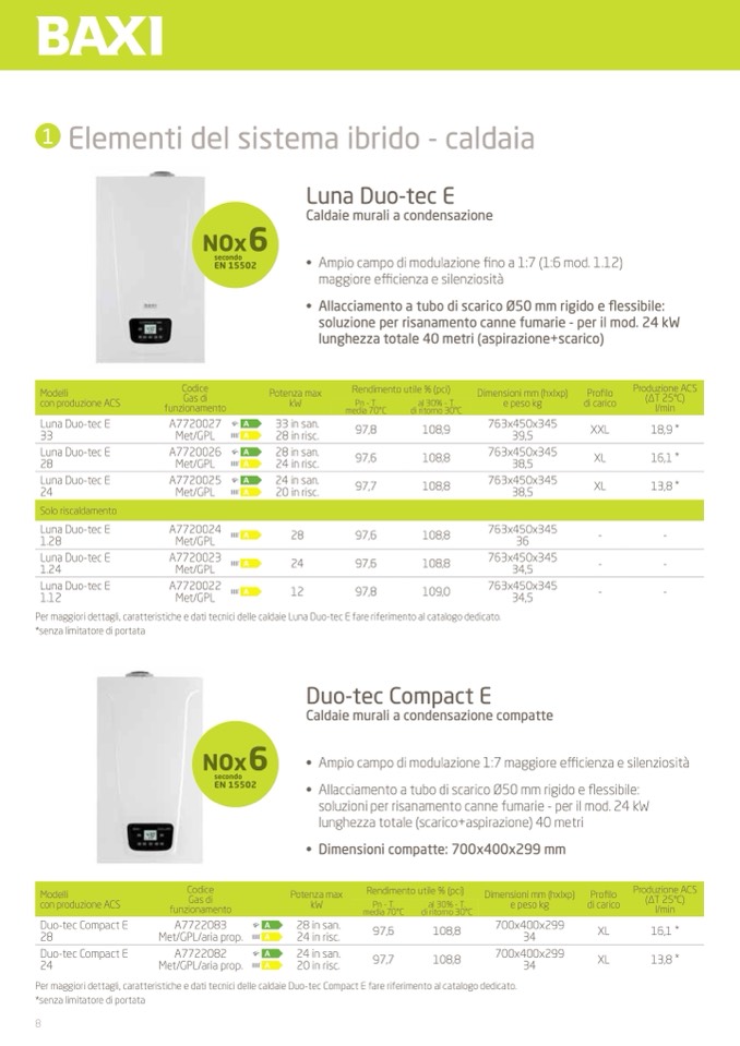 Per maggiori dettagli, caratteristiche e dati tecnici delle caldaie Luna Duo-tec E fare riferimento al catalogo dedicato.