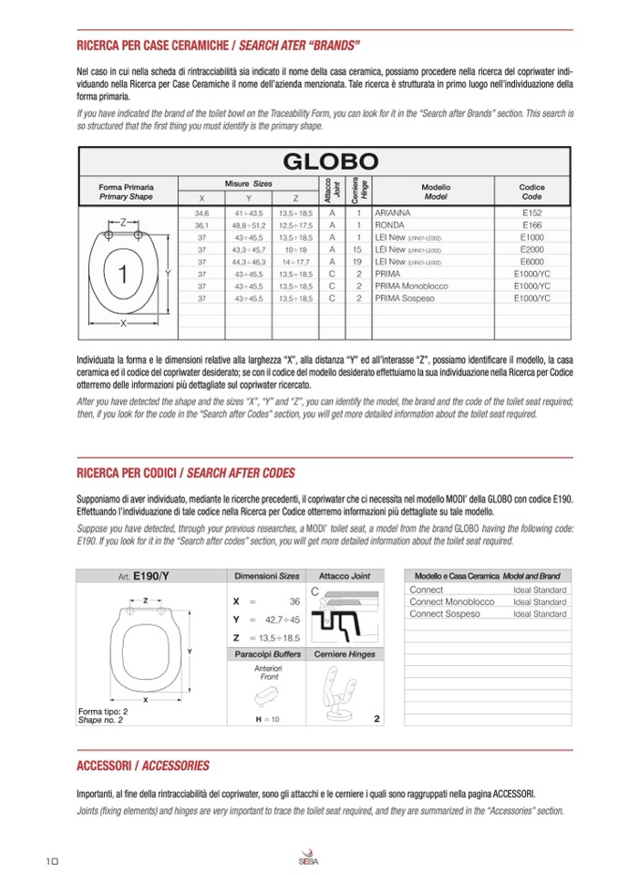 Importanti, al fine della rintracciabilità del copriwater, sono gli attacchi e le cerniere i quali sono raggruppati nella pagina ACCESSORI.