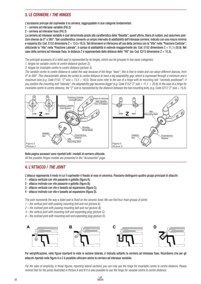 L’attacco rappresenta il modo in cui il copriwater è fissato al vaso in ceramica. Possiamo distinguere quattro gruppi principali di attacchi: