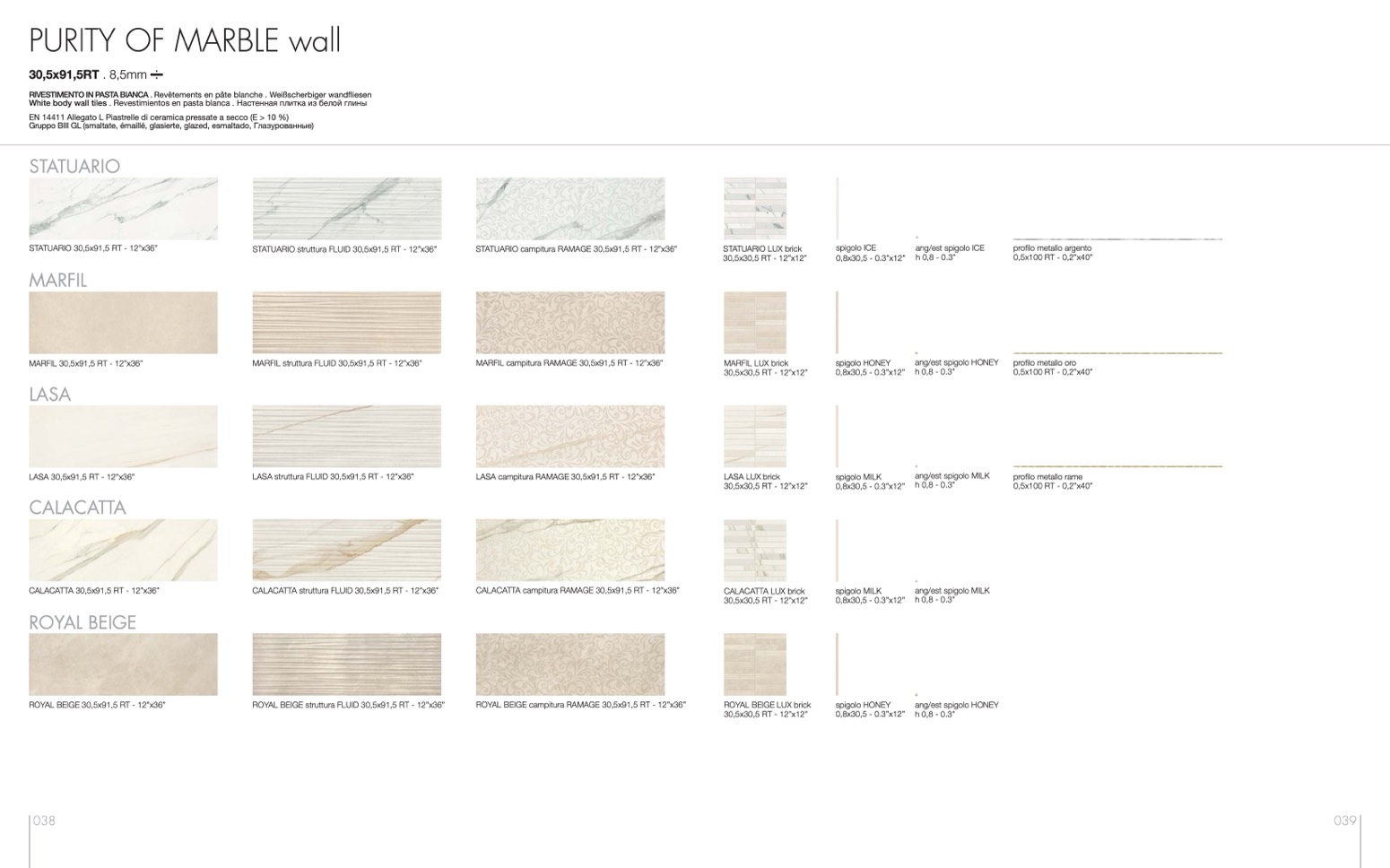 CALACATTA campitura RAMAGE 30,5x91,5 RT - 12”x36”