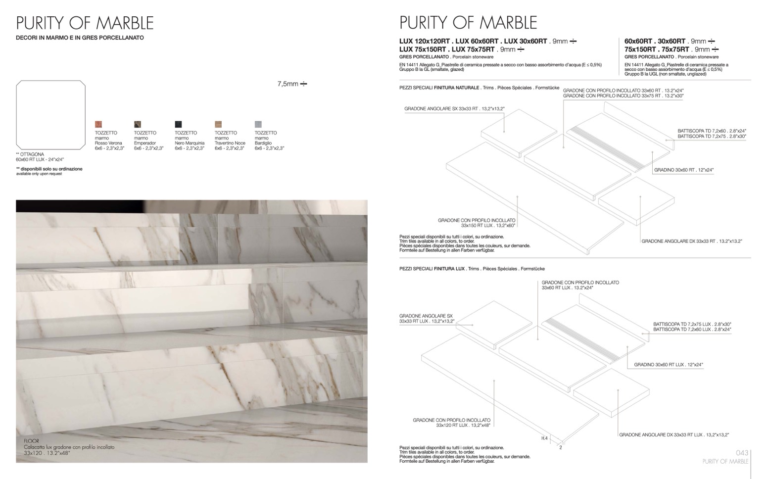 GRADONE CON PROFILO INCOLLATO 33x60 RT . 13.2”x24”
