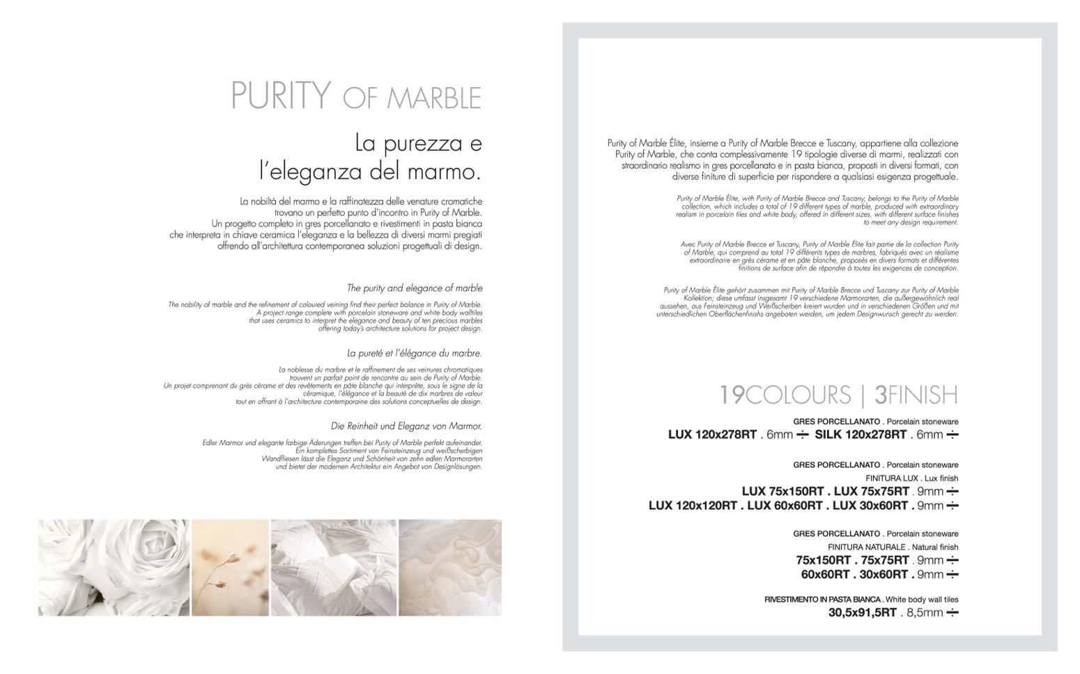 Avec Purity of Marble Brecce et Tuscany, Purity of Marble Élite fait partie de la collection Purity