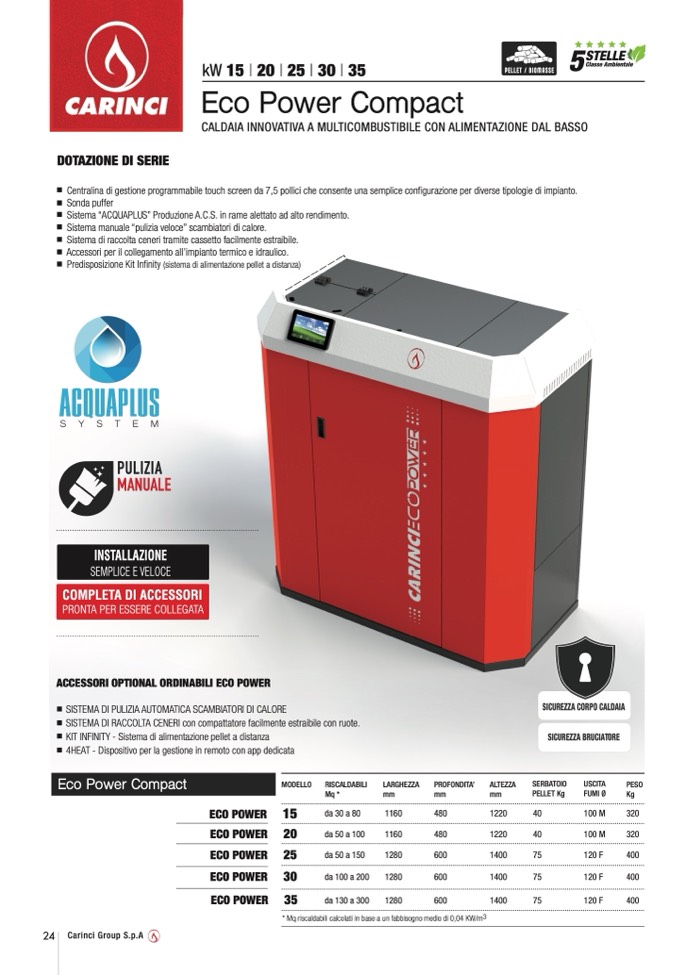 * Mq riscaldabili calcolati in base a un fabbisogno medio di 0,04 KW/m3