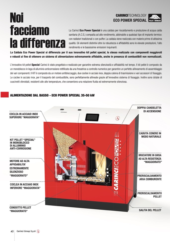 La Carinci Eco Power Special è una caldaia per riscaldamento e produzione di acqPuELaLETcalda