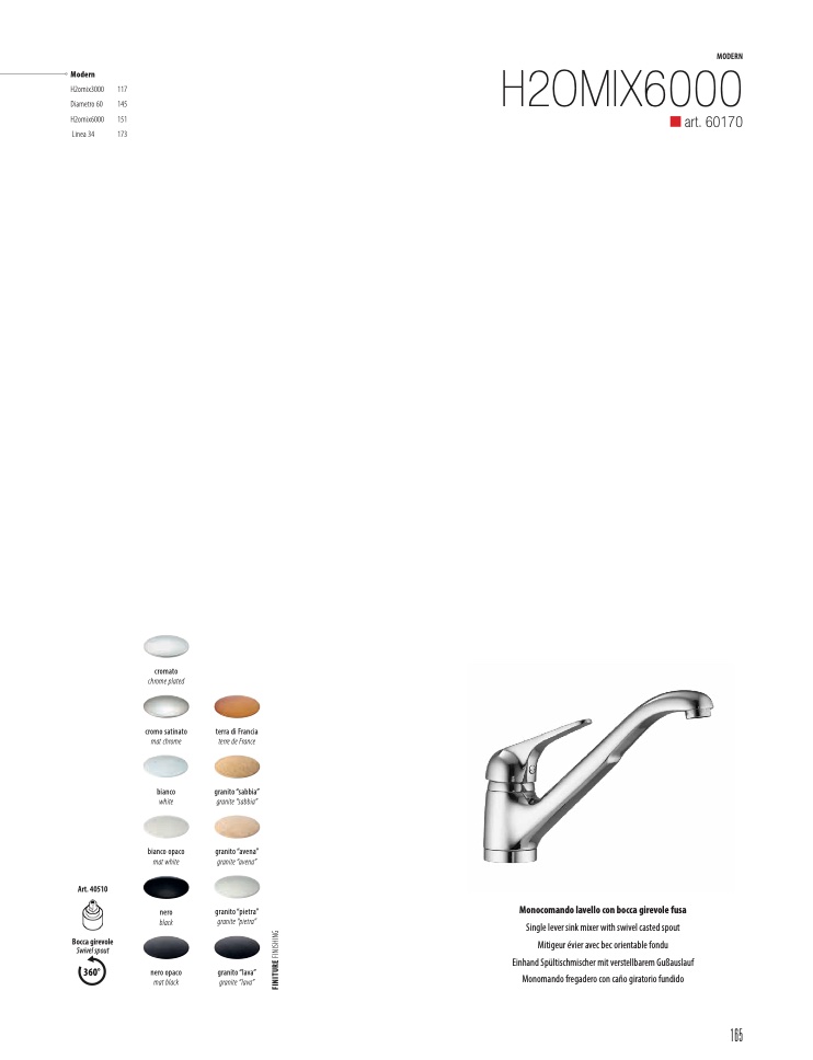 Monocomando lavello con bocca girevole fusa