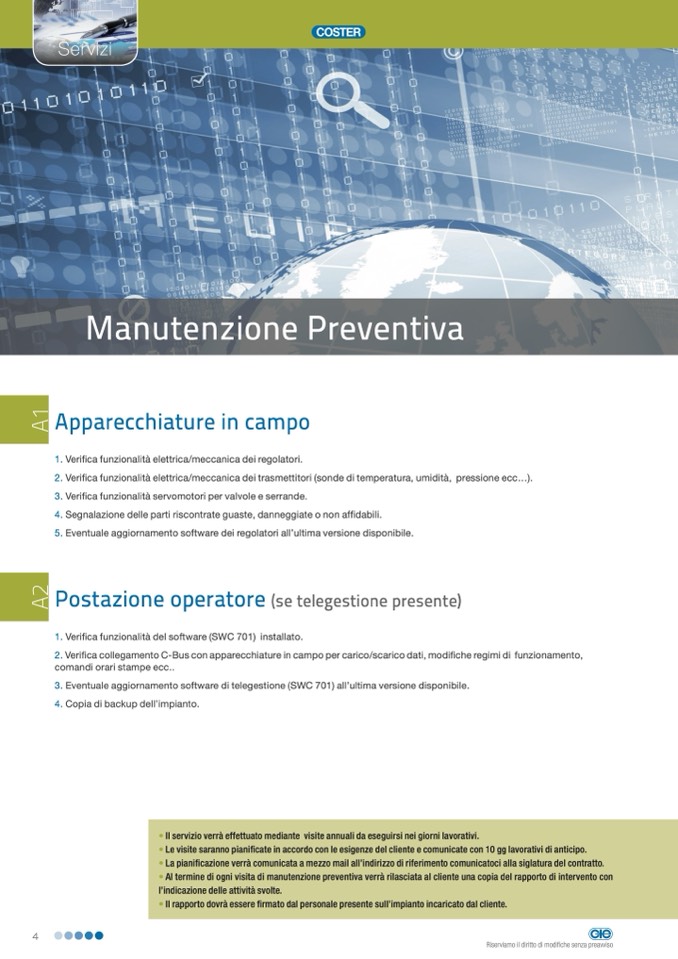 • Al termine di ogni visita di manutenzione preventiva verrà rilasciata al cliente una copia del rapporto di intervento con