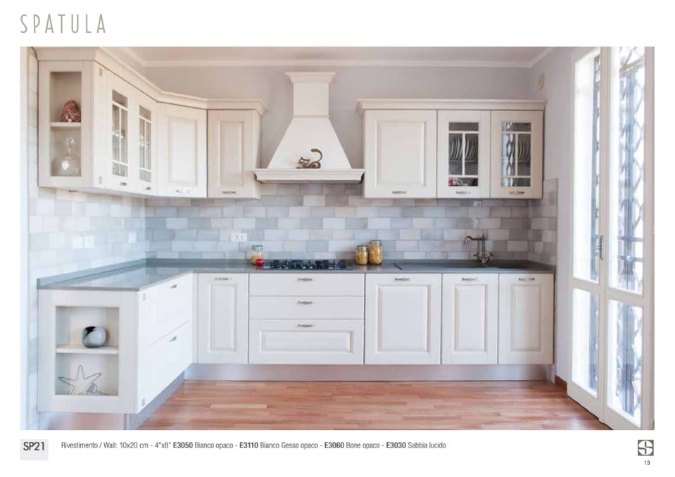 Rivestimento / Wall: 10x20 cm - 4”x8” E3050 Bianco opaco - E3110 Bianco Gesso opaco - E3060 Bone opaco - E3030 Sabbia lucido