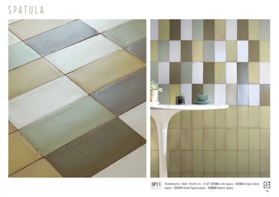 Rivestimento / Wall: 10x20 cm - 4”x8” E3180 Lime opaco - E3160 Grigio Salvia