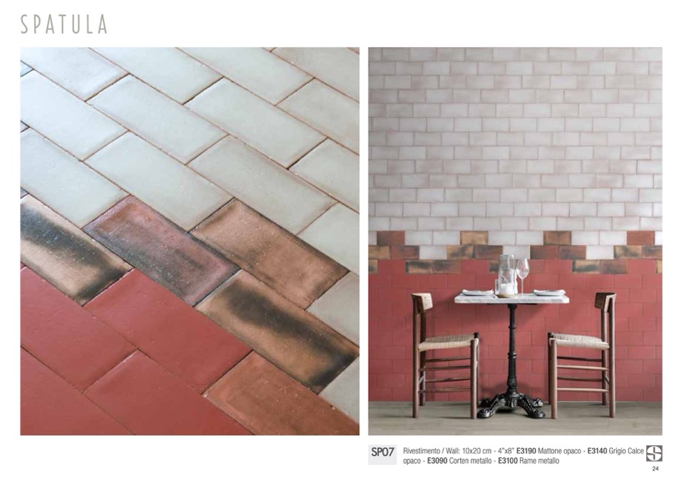 Rivestimento / Wall: 10x20 cm - 4”x8” E3190 Mattone opaco - E3140 Grigio Calce