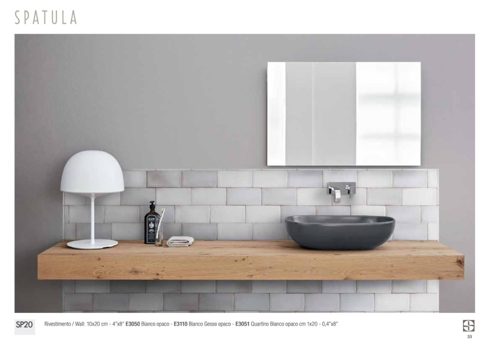 Rivestimento / Wall: 10x20 cm - 4”x8” E3050 Bianco opaco - E3110 Bianco Gesso opaco - E3051 Quartino Bianco opaco cm 1x20 - 0,4”x8”