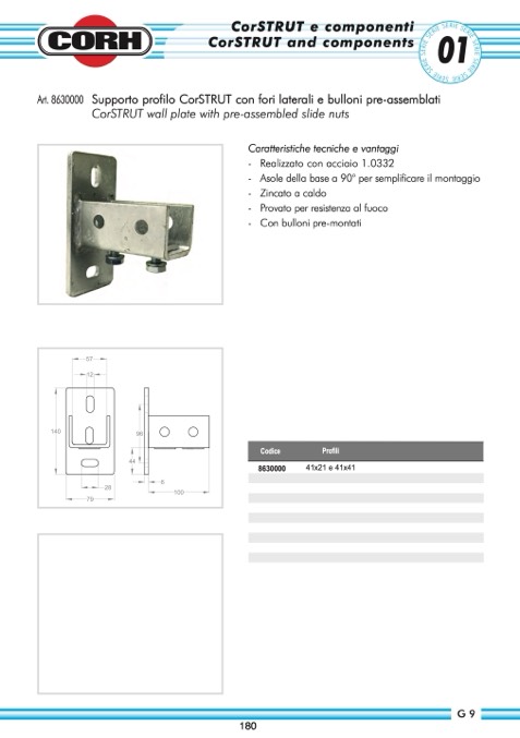 Supporto profilo CorSTRUT con fori laterali e bulloni pre-assemblati