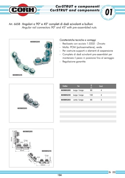 Angolari a 90° e 45° completi di dadi scivolanti e bulloni
