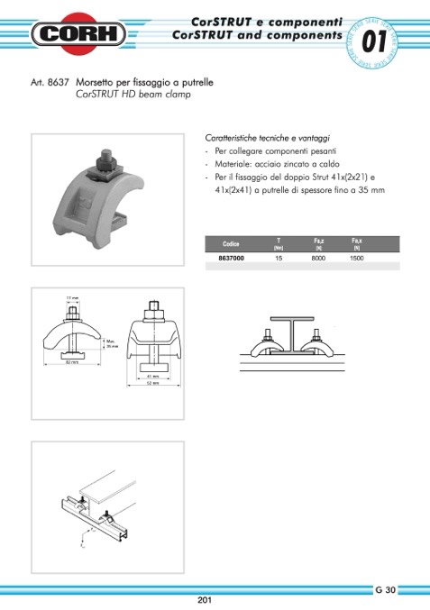Art. 8637 Morsetto per fissaggio a putrelle