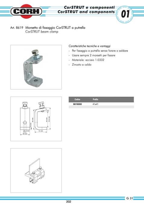 Morsetto di fissaggio CorSTRUT a putrella