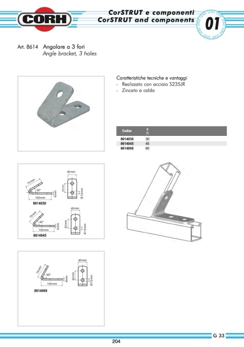 Angolare a 3 fori