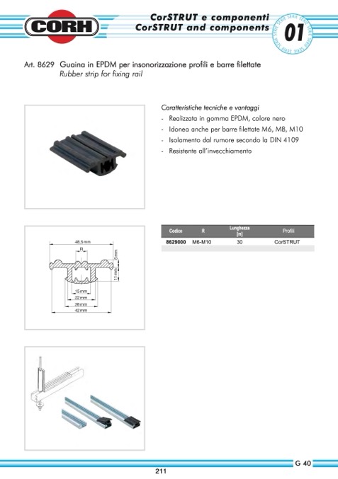 Guaina in EPDM per insonorizzazione profili e barre filettate