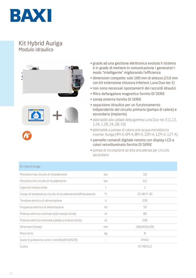 • abbinabile alle caldaie della gamma Luna Duo-tec E (1.12,