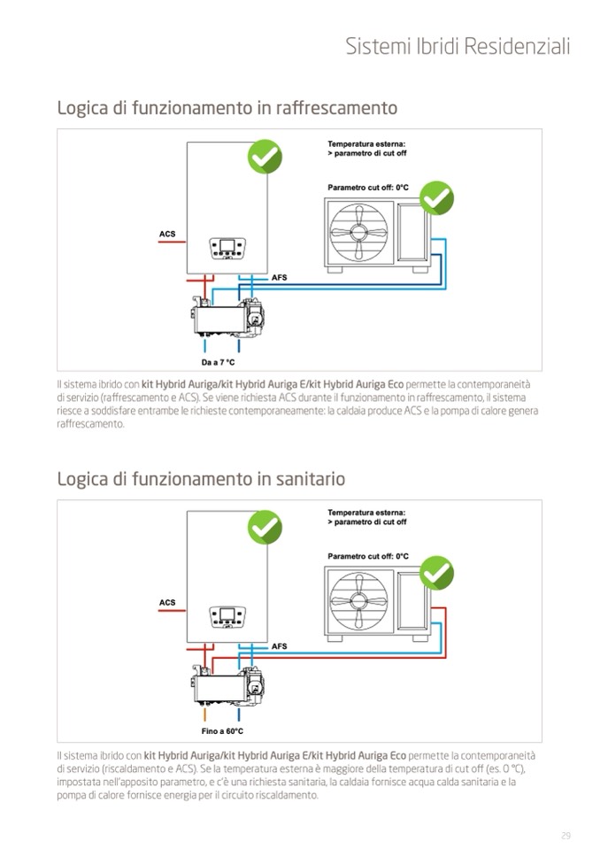riesce a soddisfare entrambe le richieste contemporaneamente: la caldaia produce ACS e la pompa di calore genera