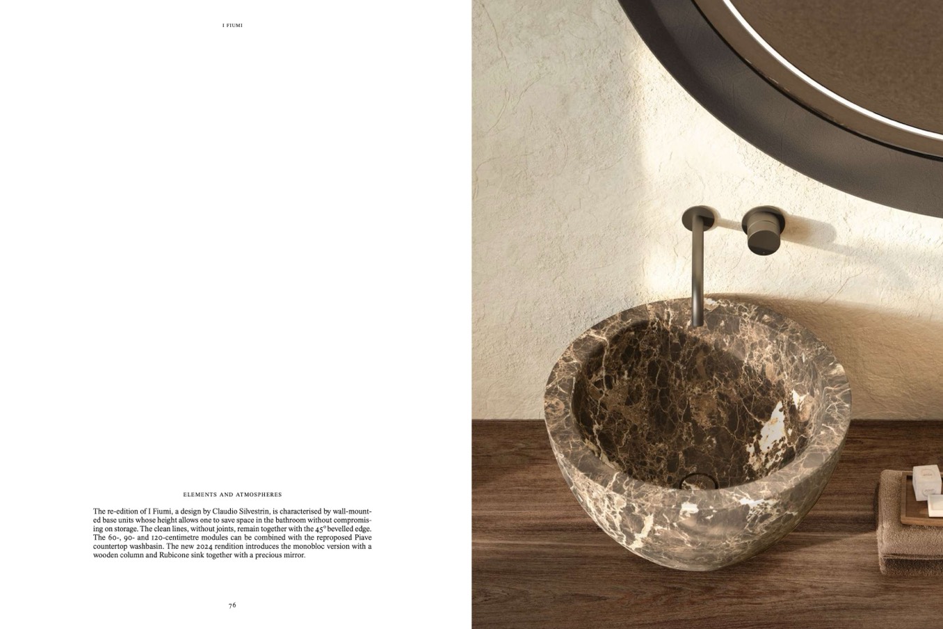 The re-edition of I Fiumi, a design by Claudio Silvestrin, is characterised by wall-mount-