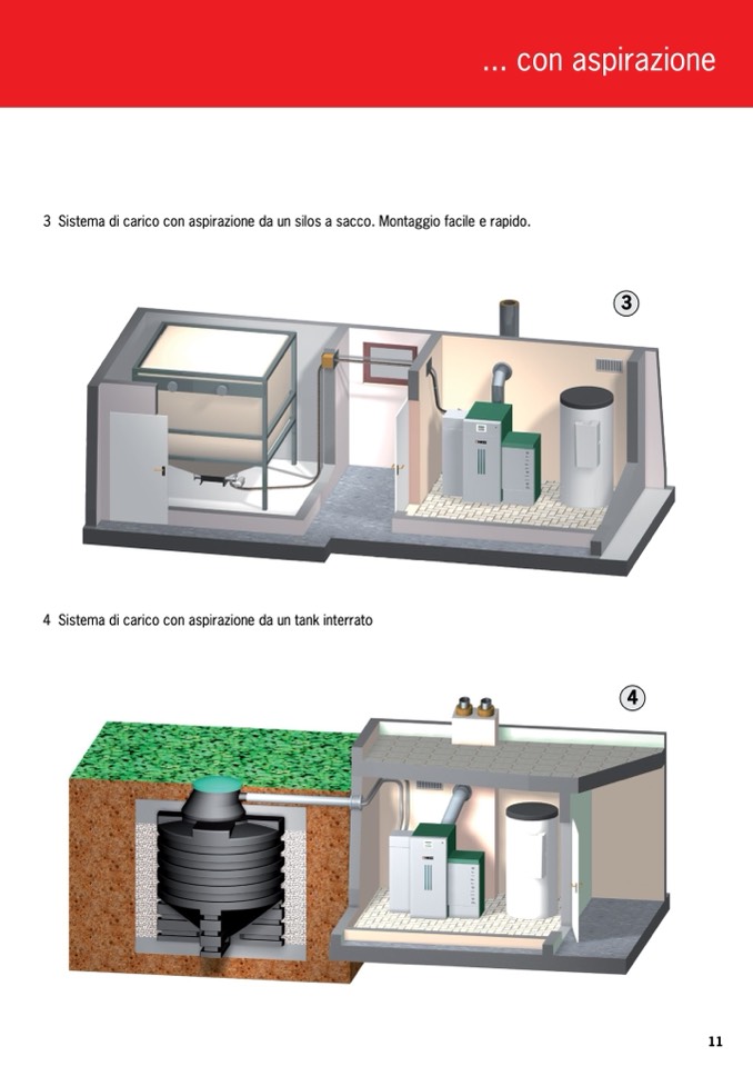 3 Sistema di carico con aspirazione da un silos a sacco. Montaggio facile e rapido.