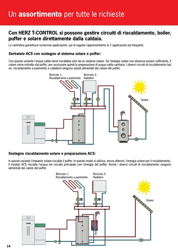 Con HERZ T-CONTROL si possono gestire circuiti di riscaldamento, boiler,