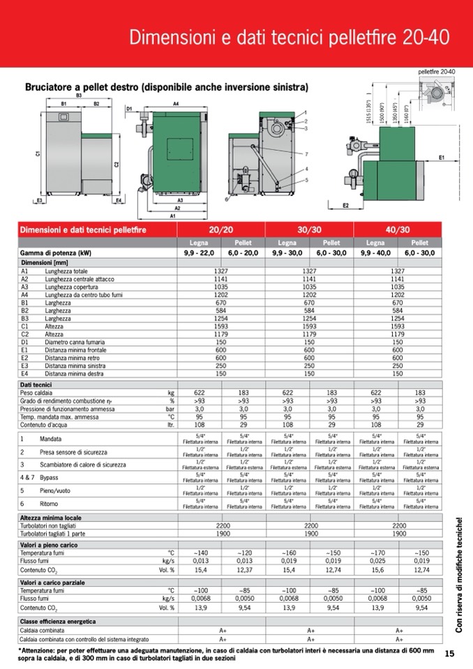 sopra la caldaia, e di 300 mm in caso di turbolatori tagliati in due sezioni